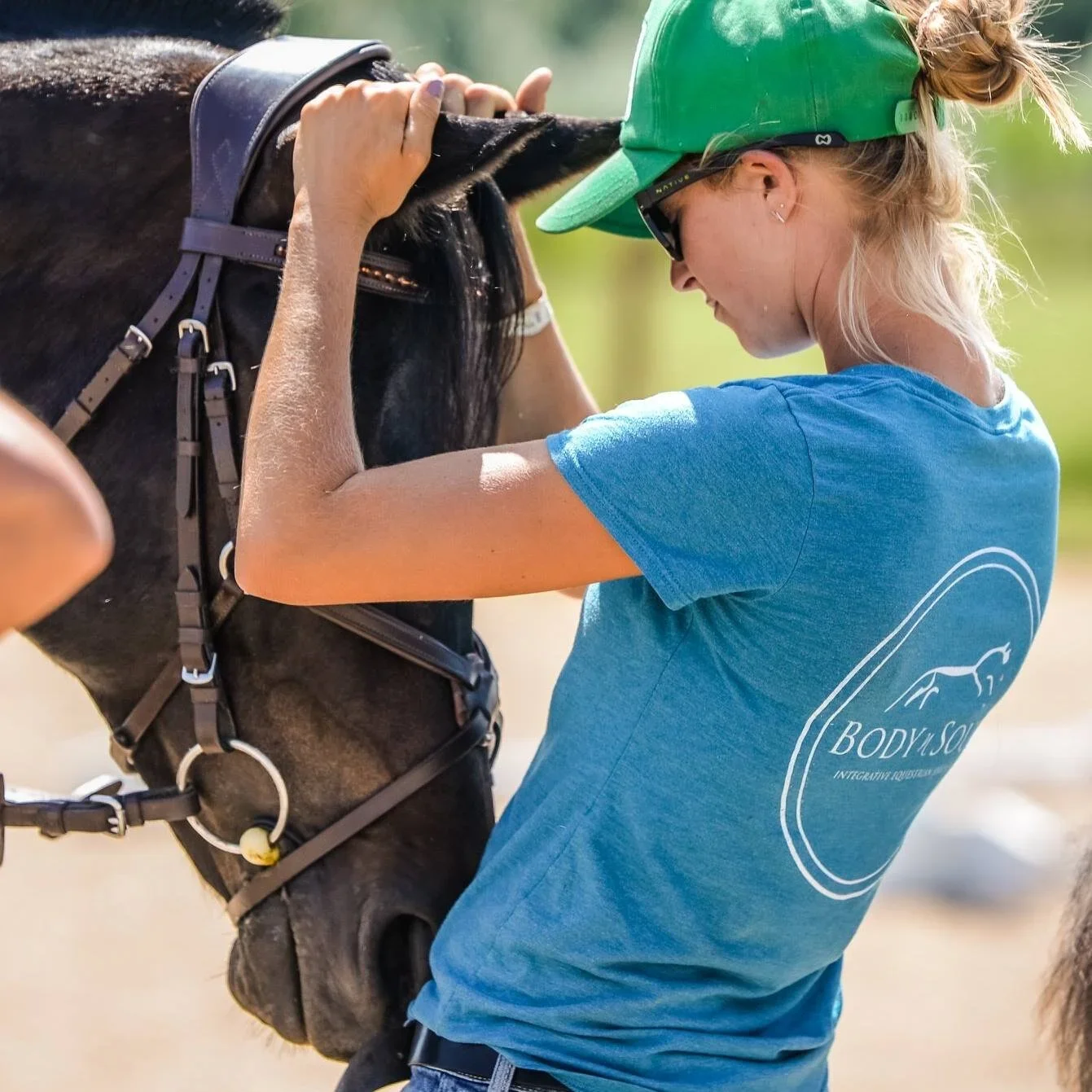 Connecting with horses (not just riding; grooming or just even being around them) can cause our brains to release positive neurotransmitters. The three big ones that are triggered are: oxytocin (the love hormone), serotonin and dopamine, which are responsible for the happy feelings we get. All three of these neurotransmitters make us feel safe, secure, happy and loved. Which is one of the reasons we love being around horses.